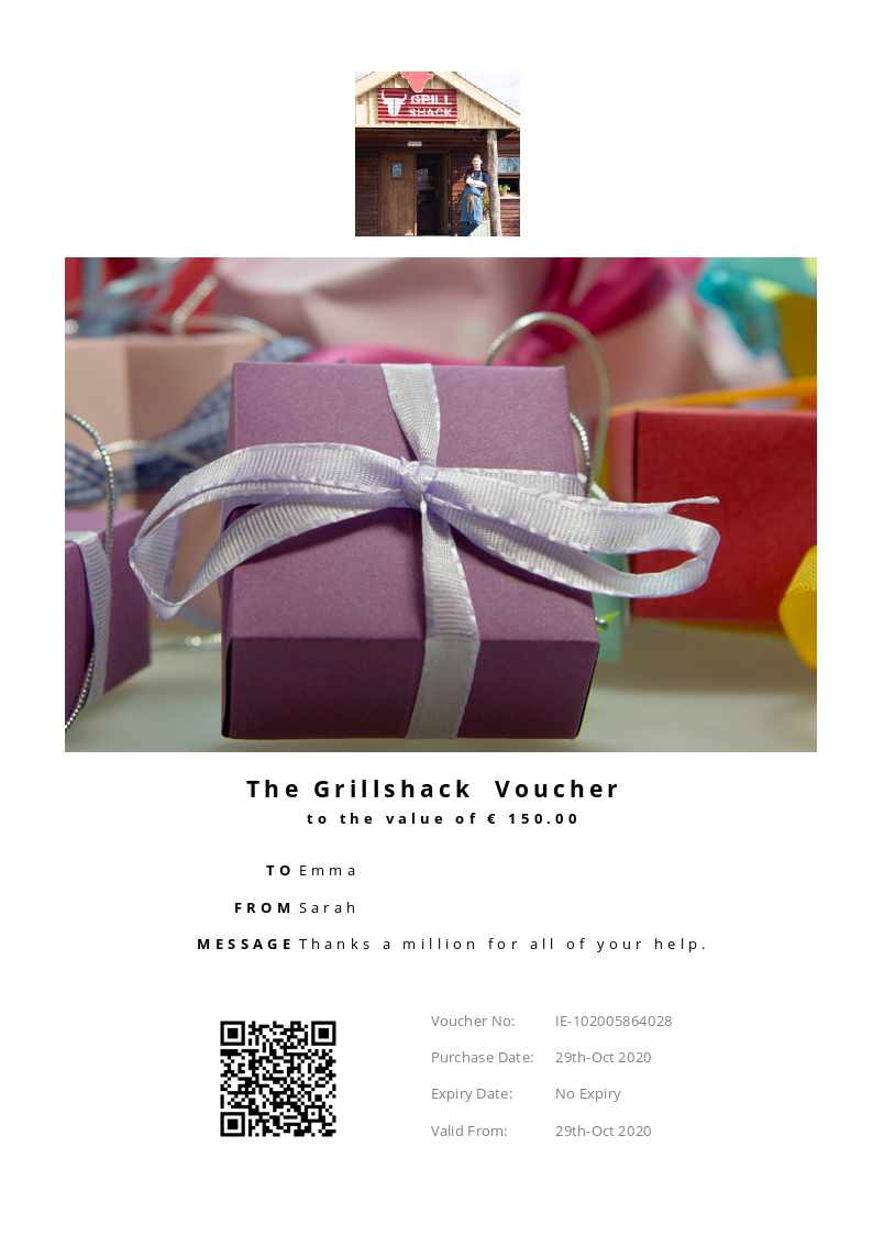 The Grillshack allows you to purchase instantly printable gift vouchers, special offers and tickets using the Voucher Connect platform.
